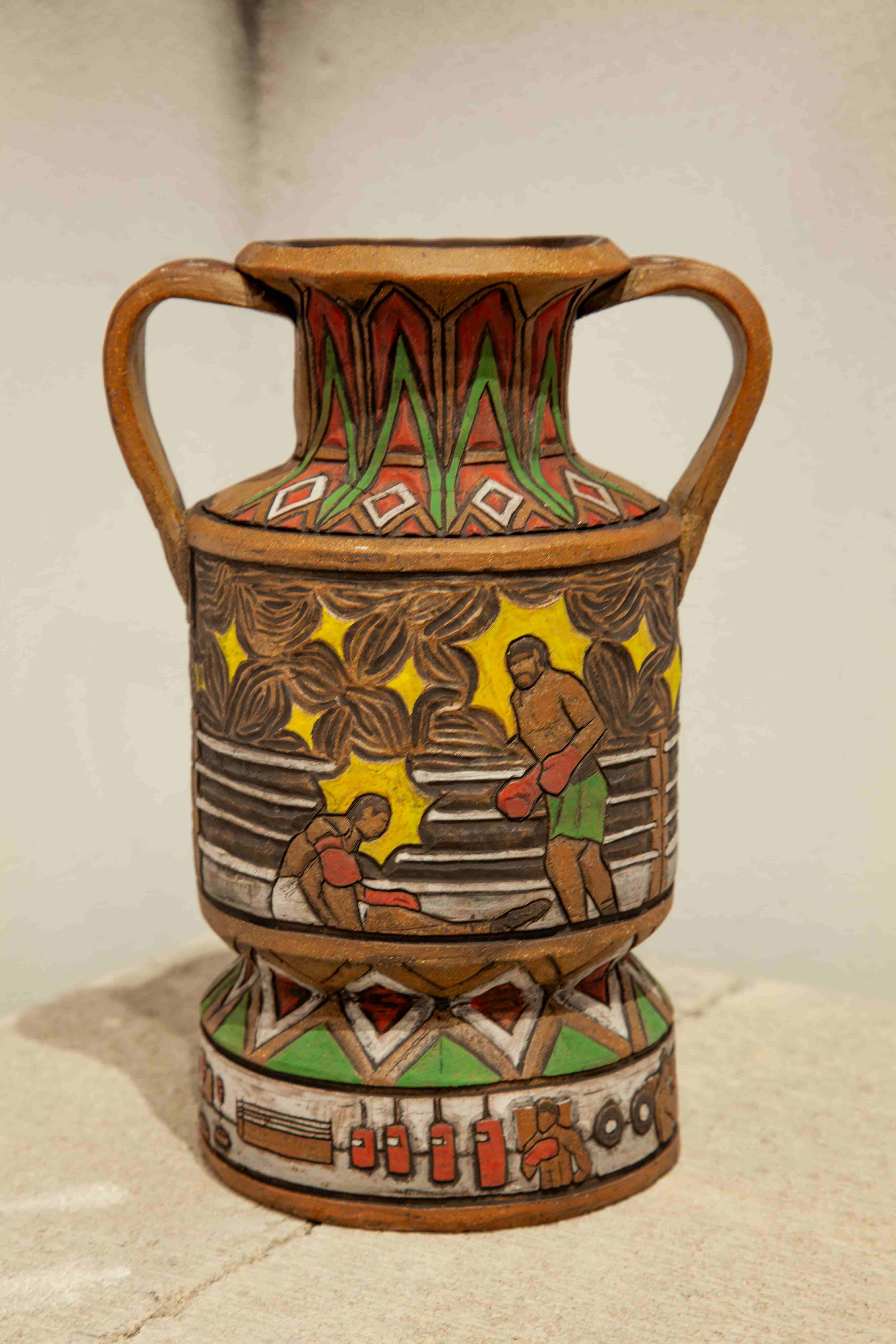 Aaron Noble Eskridge is a recent B.F.A. ceramics graduate from the University of Texas at El Paso. Raised in the border region between El Paso and Juárez, his cross-border upbringing informs work rooted in cultural identity and personal narrative. Drawing from rural western landscapes, ranch life, street fashion, rap culture, and contemporary art, he creates pieces shaped by layered environments and lived experience.