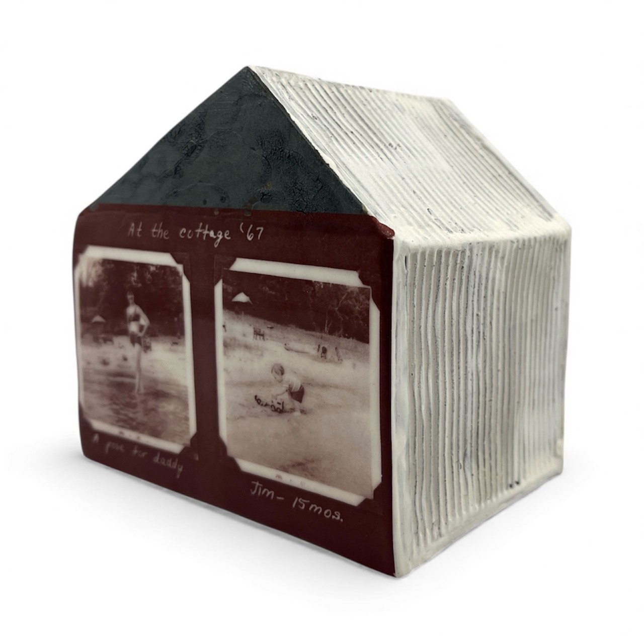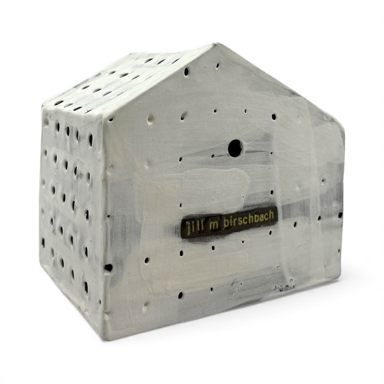 Dark stoneware house, slip and glaze by Jill Birschbach.