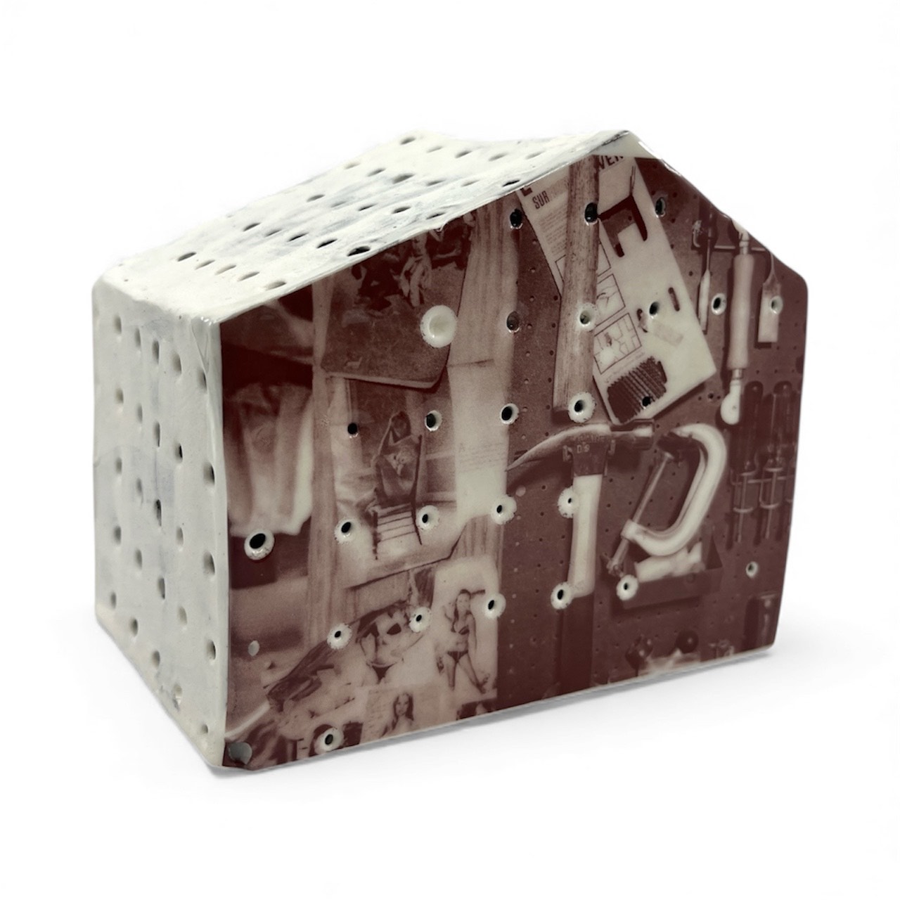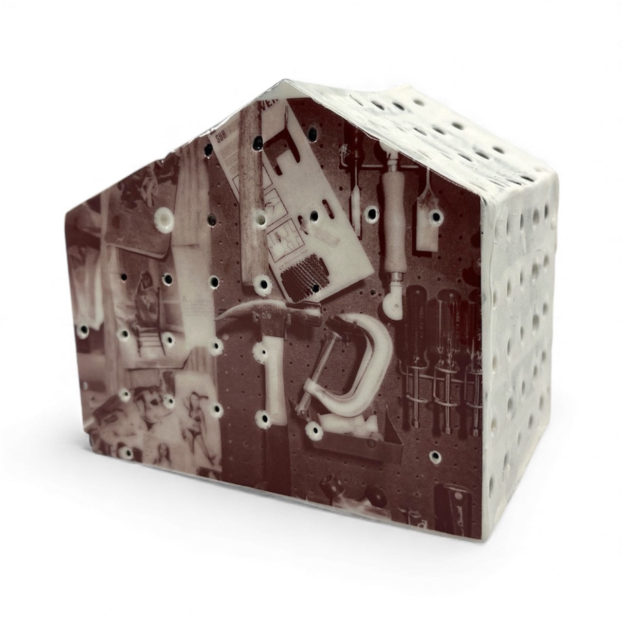 Dark stoneware house, slip and glaze by Jill Birschbach.