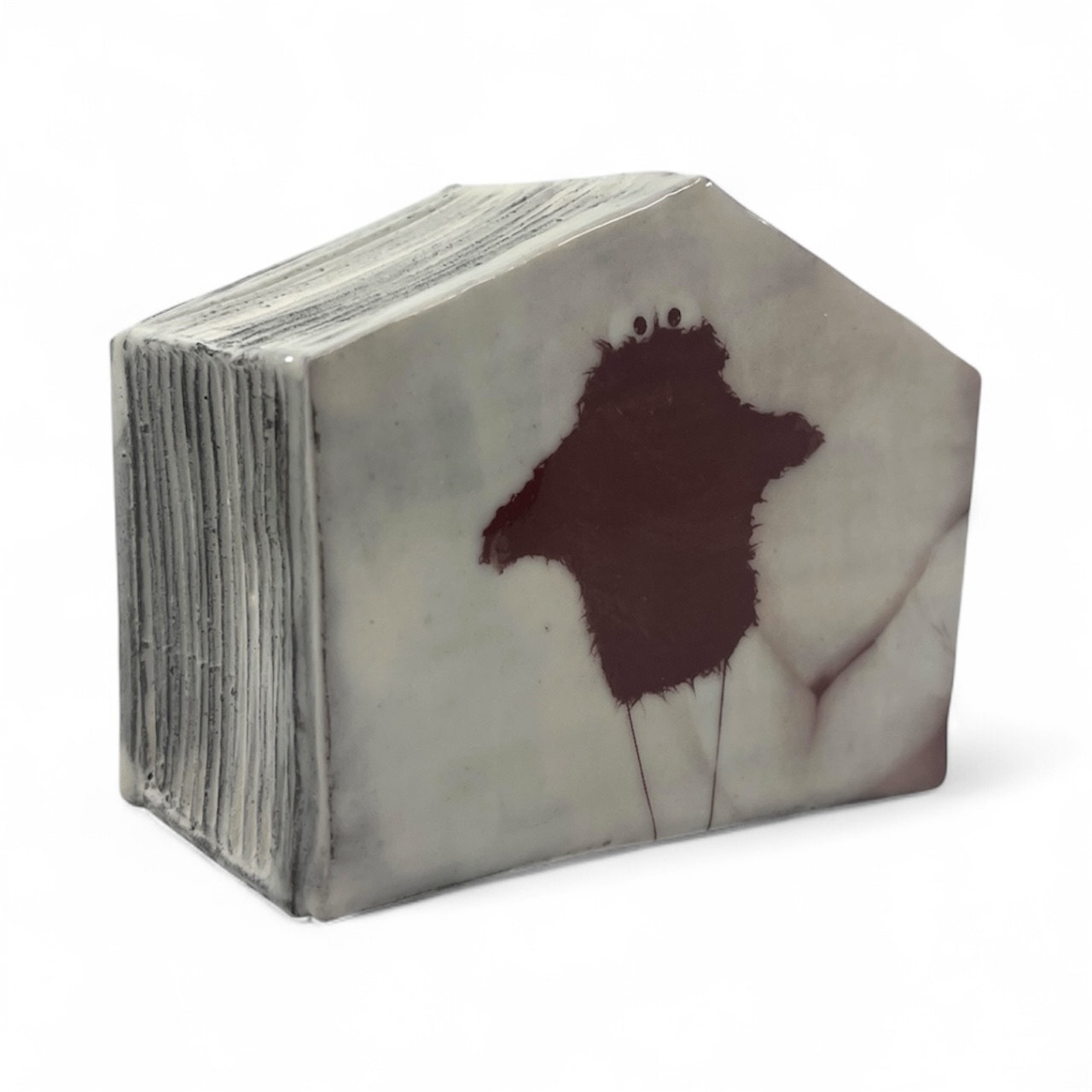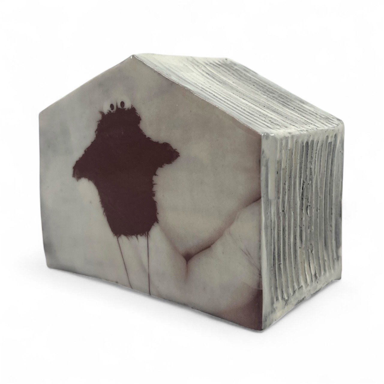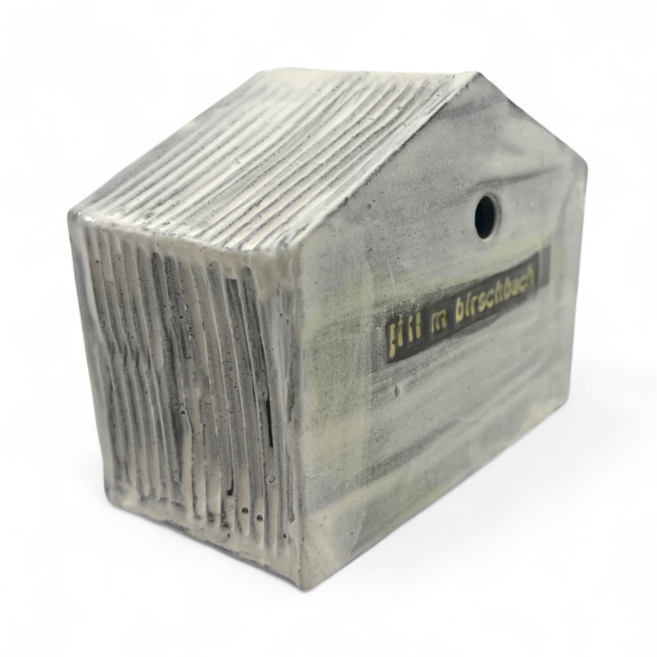 Dark stoneware house, slip and glaze by Jill Birschbach.