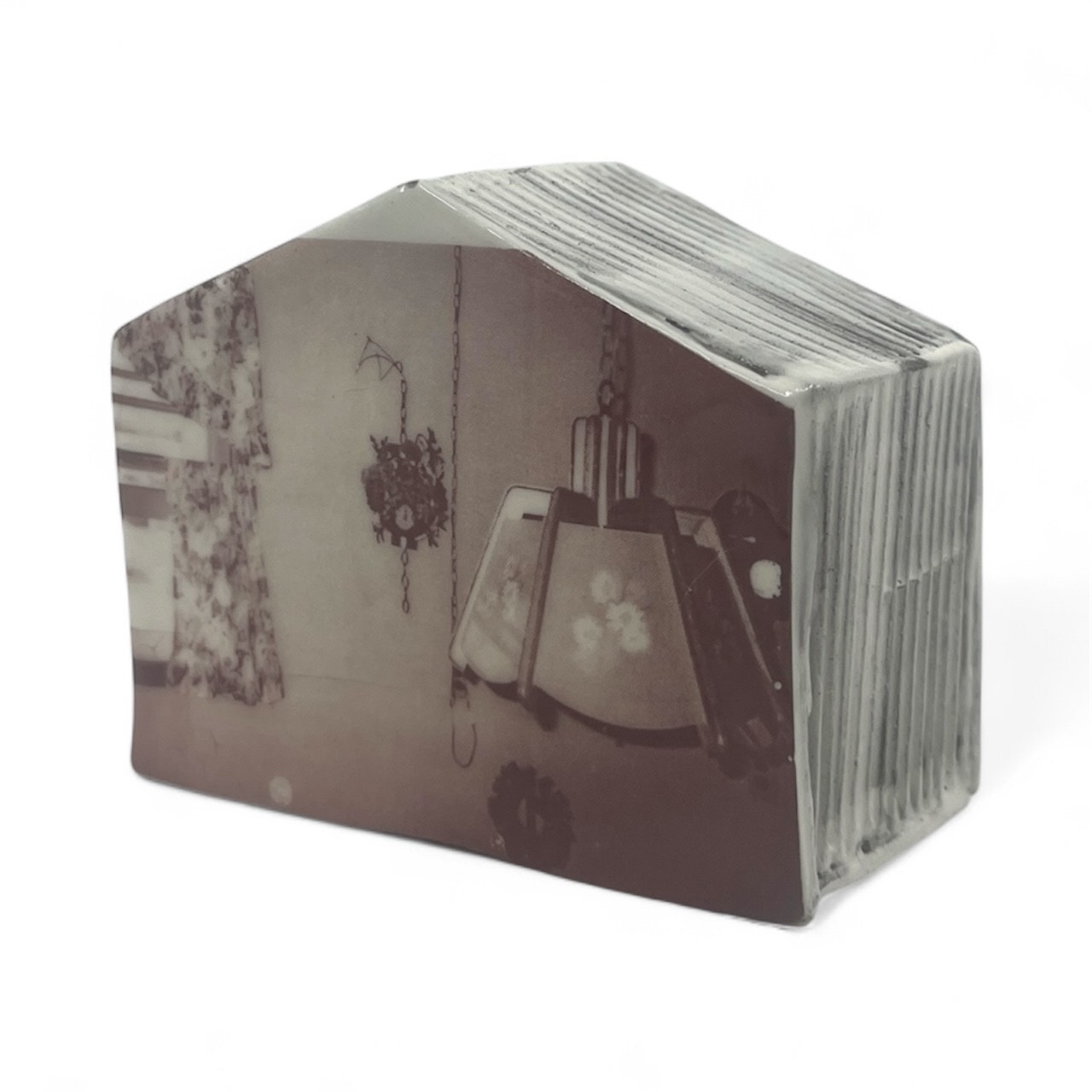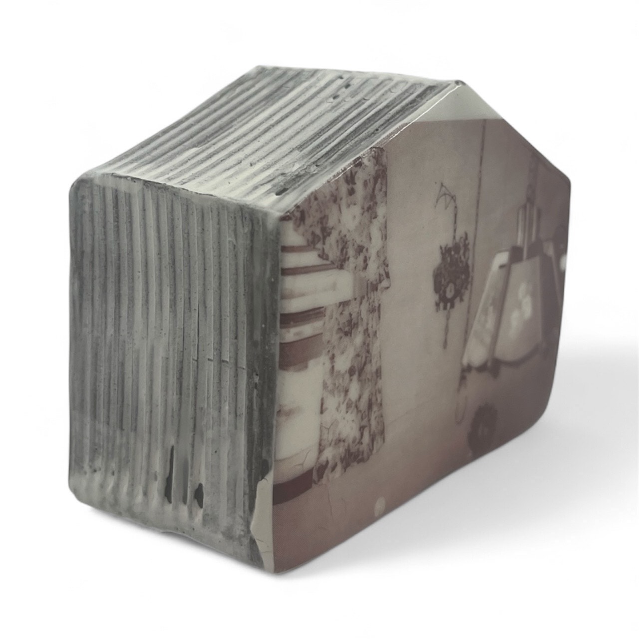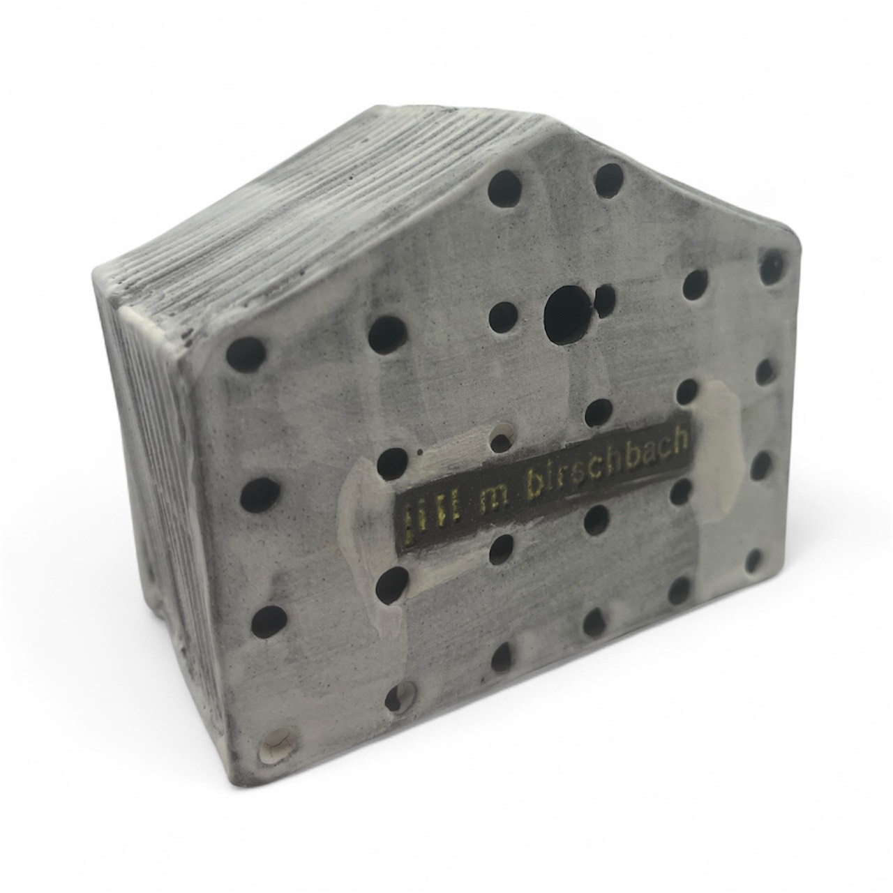 Dark stoneware house, slip and glaze by Jill Birschbach.