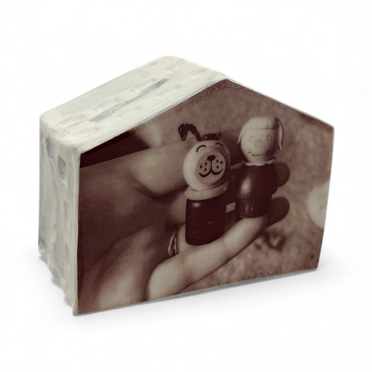 Dark stoneware house, slip and glaze by Jill Birschbach.