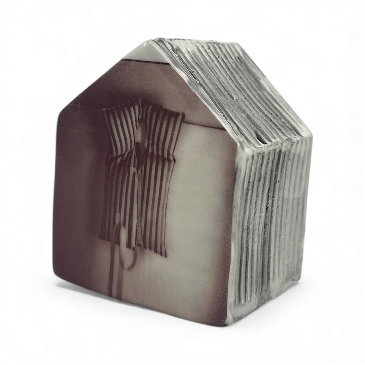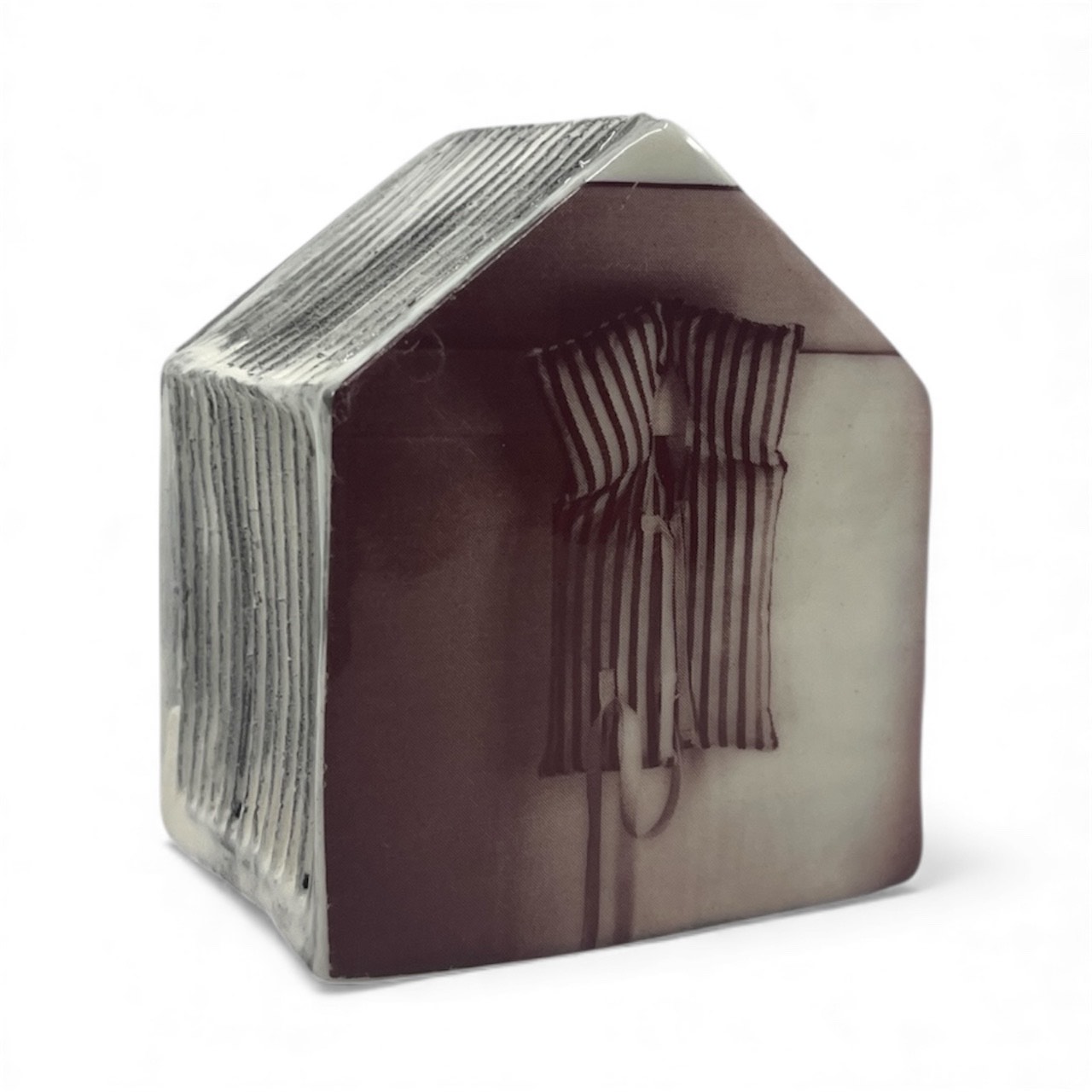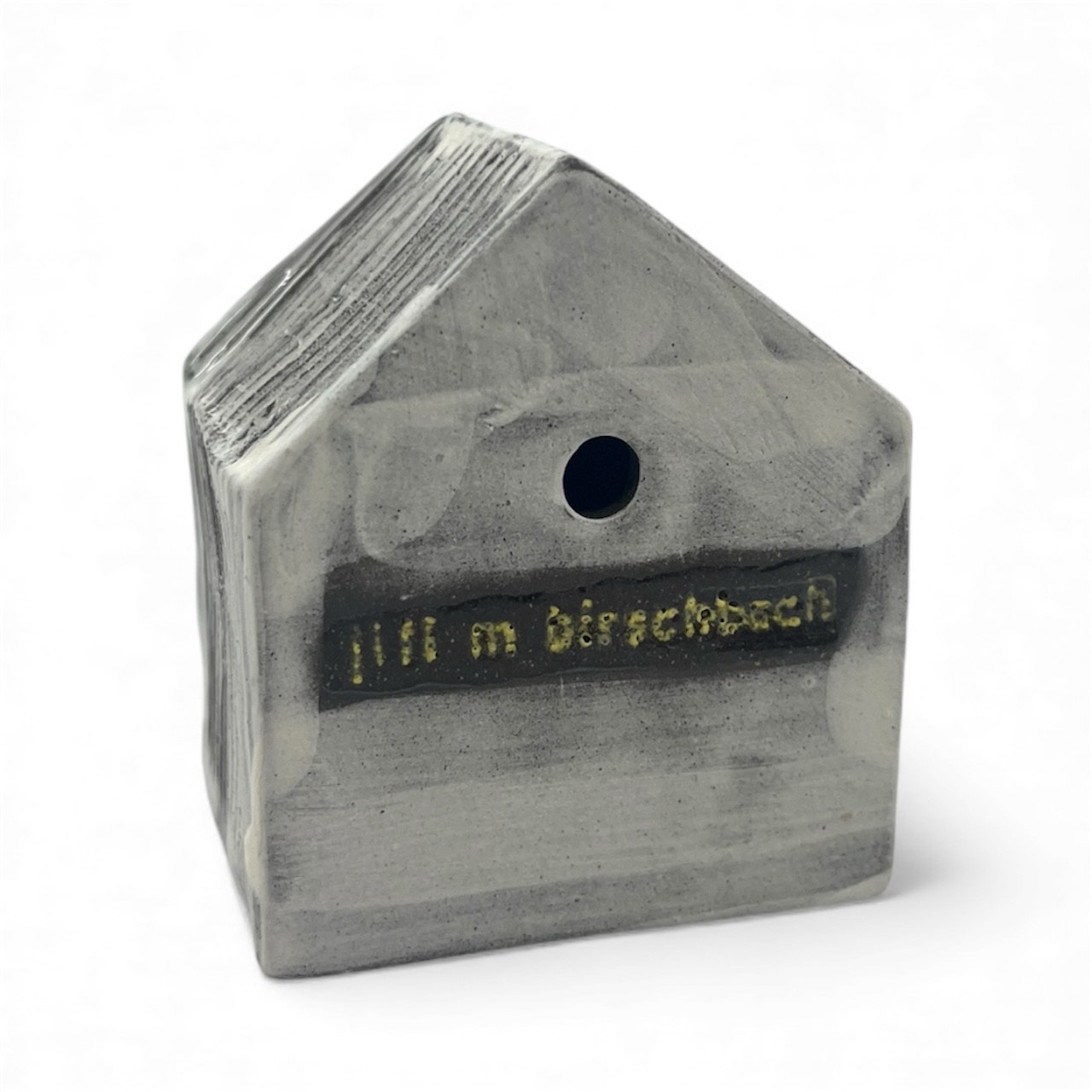 Dark stoneware house, slip and glaze by Jill Birschbach.