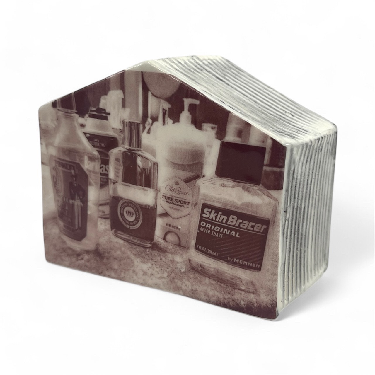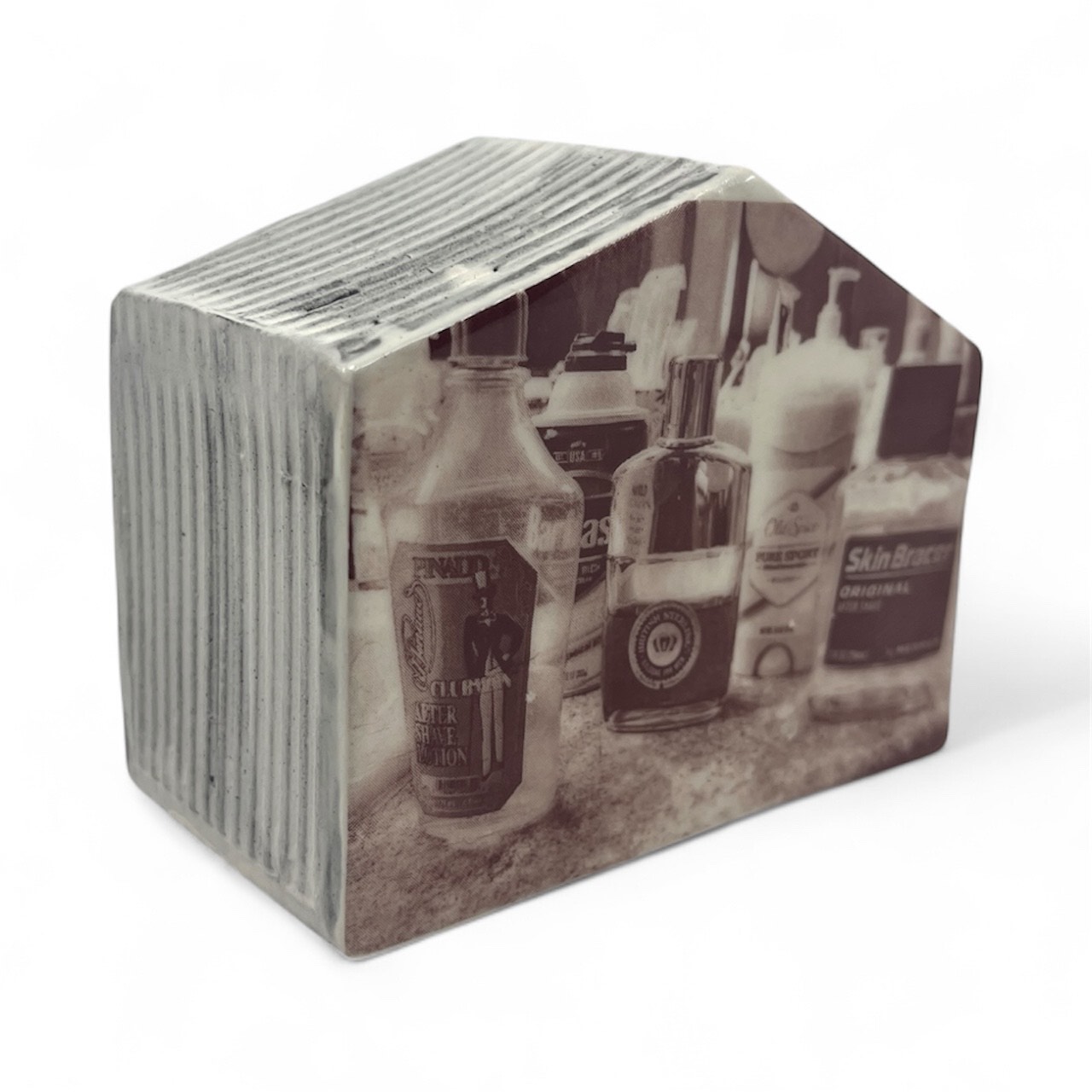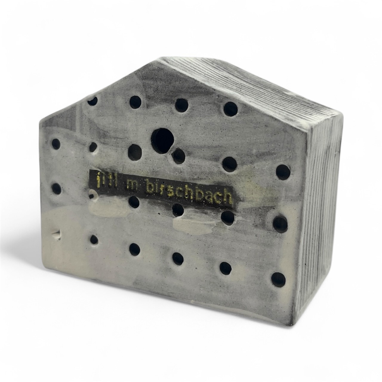 Dark stoneware house, slip and glaze by Jill Birschbach.