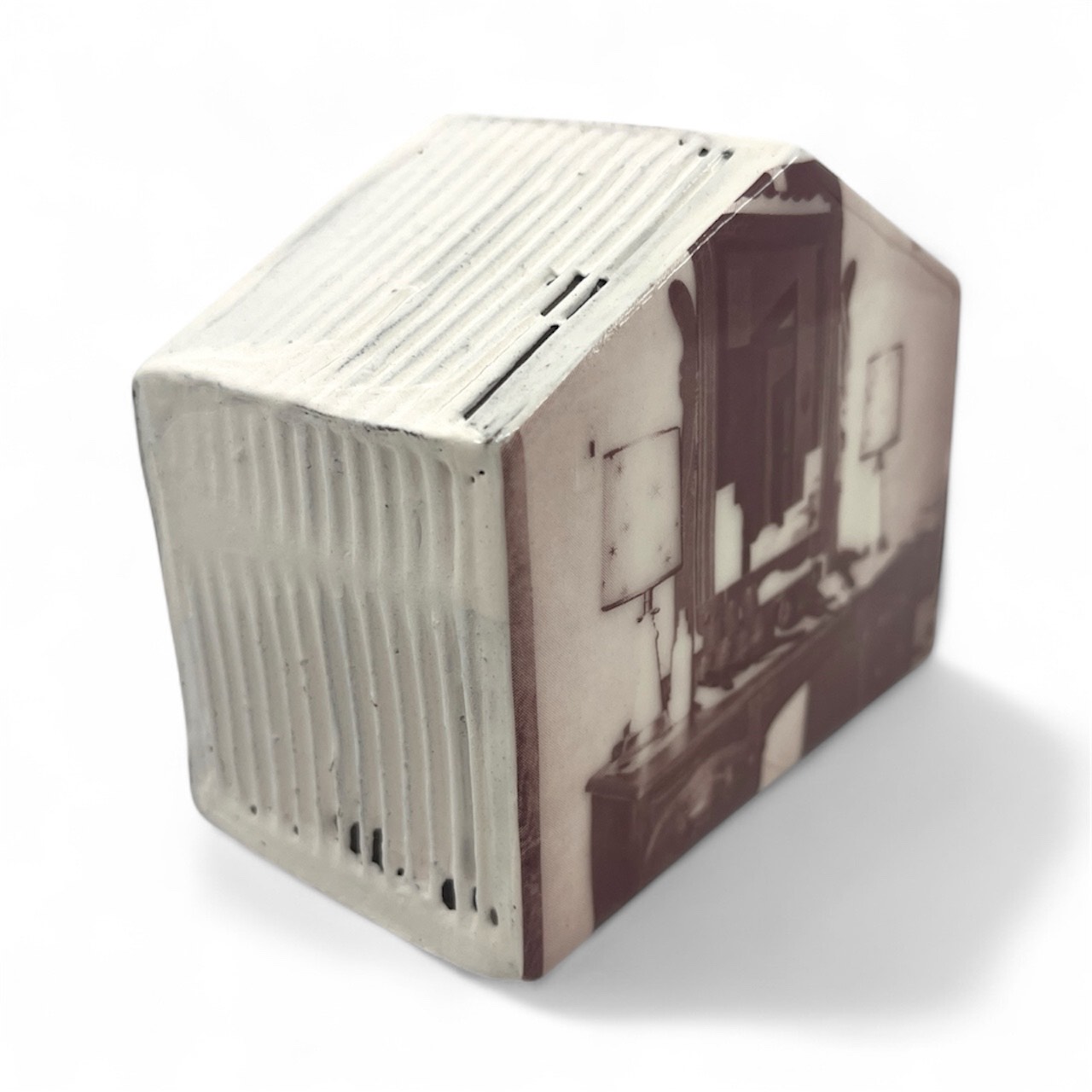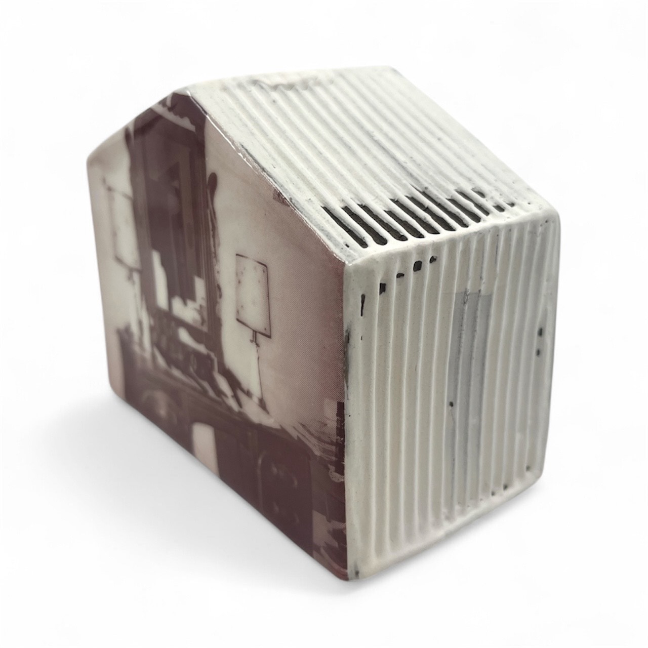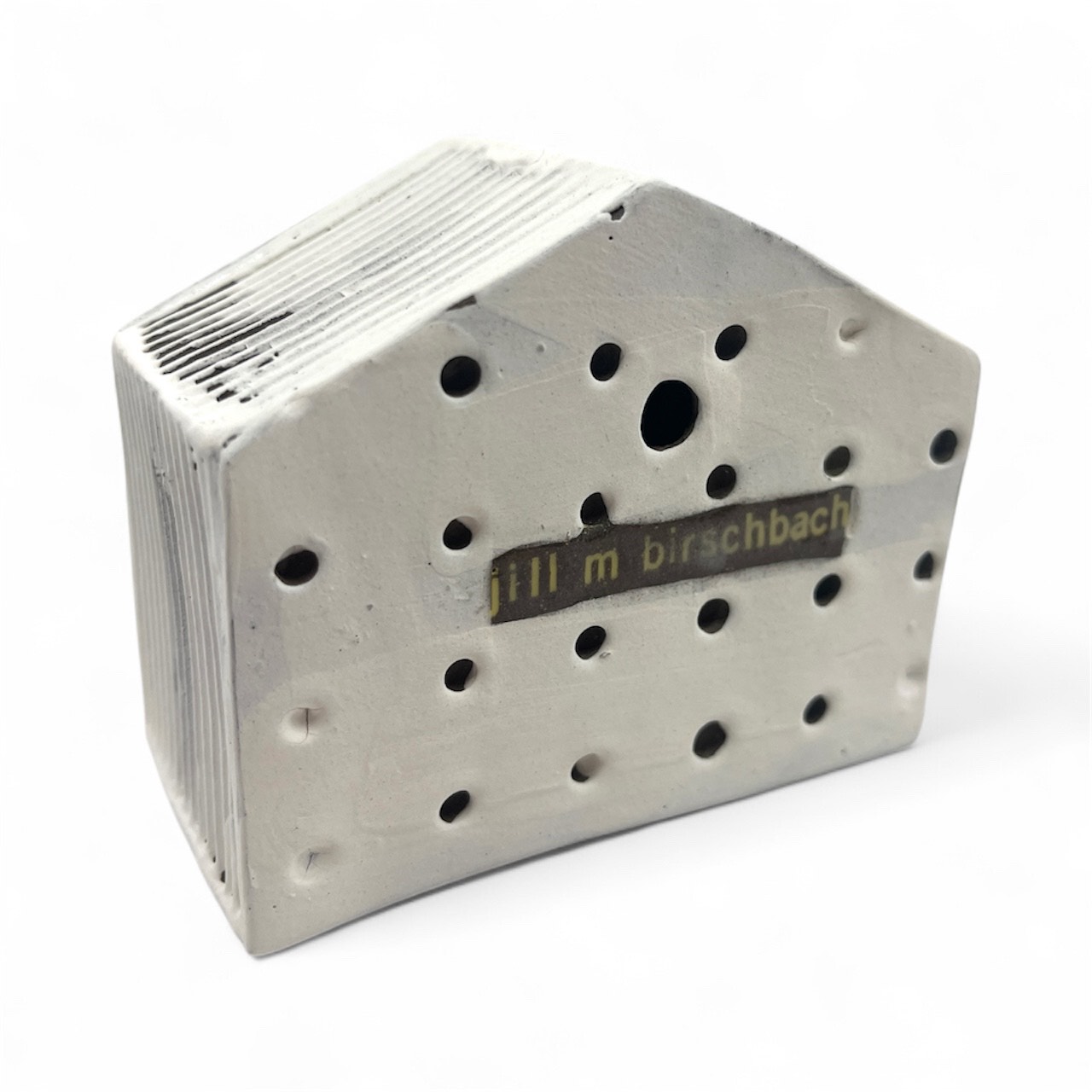 Dark stoneware house, slip and glaze by Jill Birschbach.