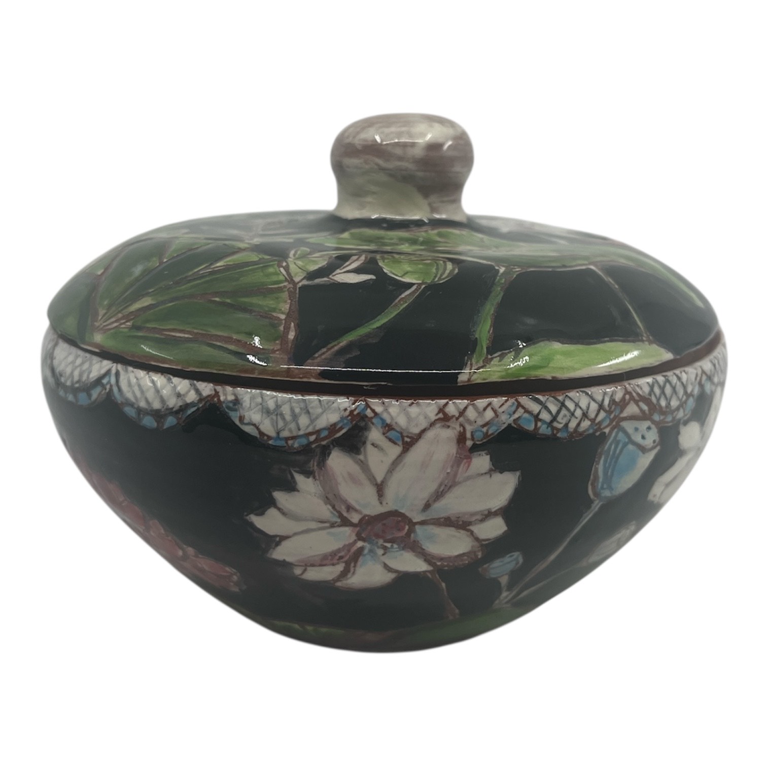 Wheel thrown, earthenware covered dish by Kim Gust
