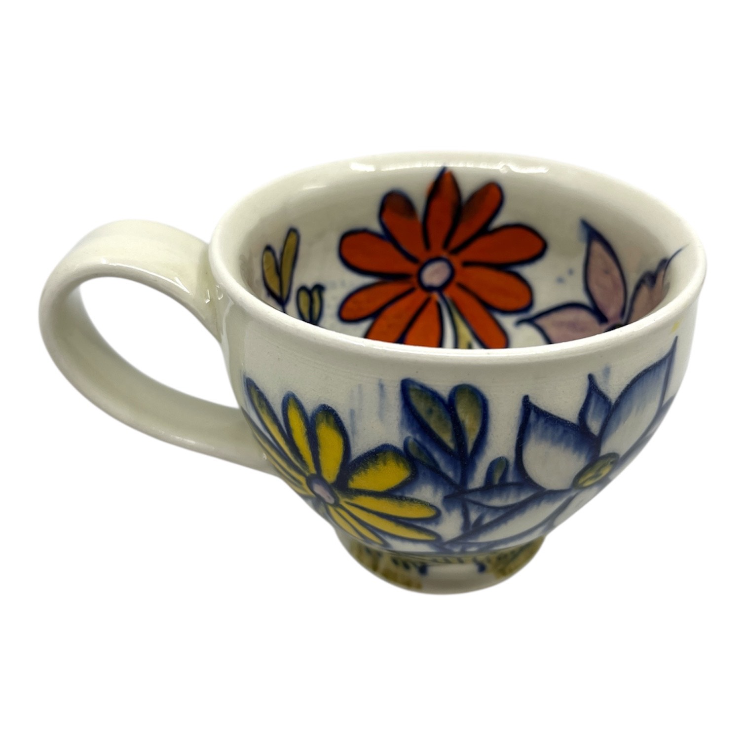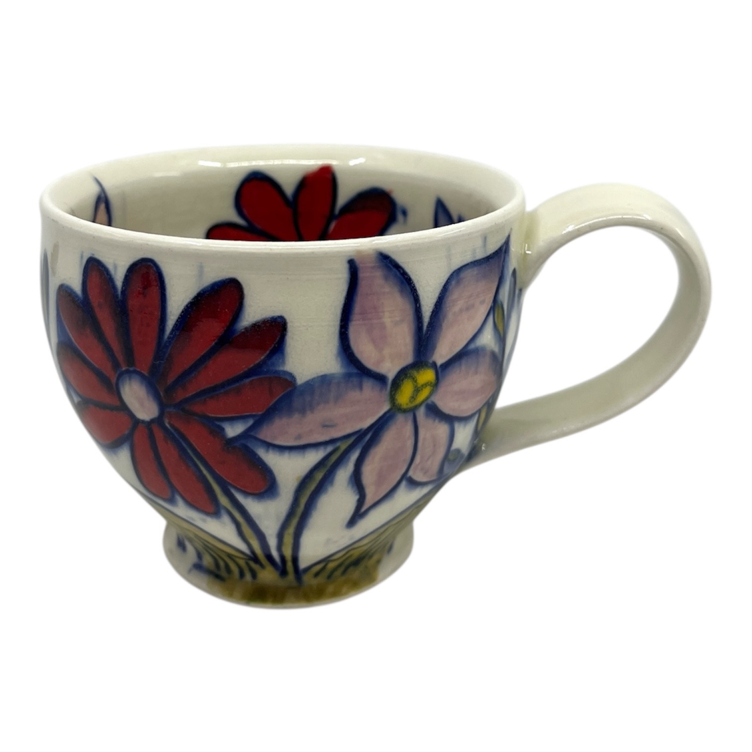 Wheel thrown porcelain mug with wildflowers by Mariko Brown Harkin