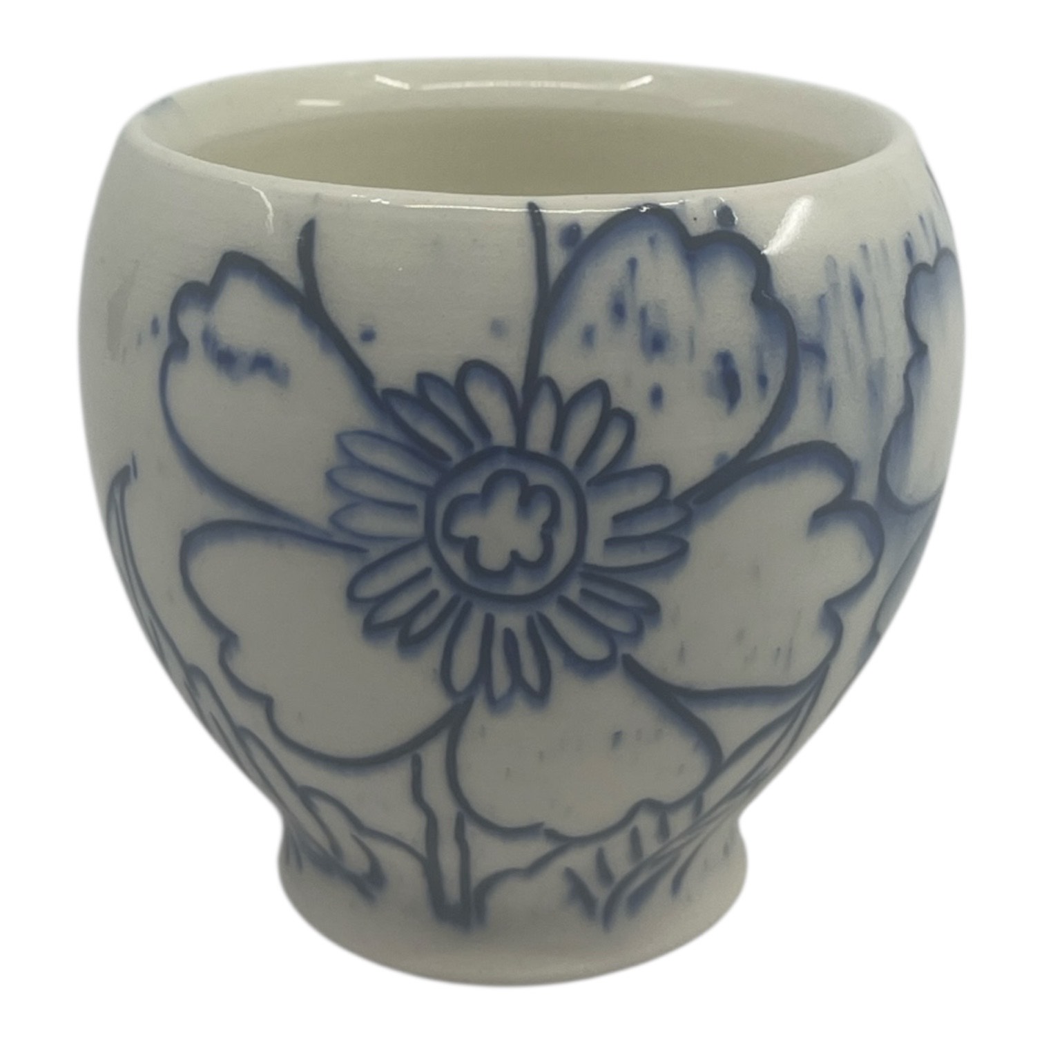 Keywords: Wheel, thrown, porcelain, cup, with, dahlia, by, Mariko, Brown, Harkin