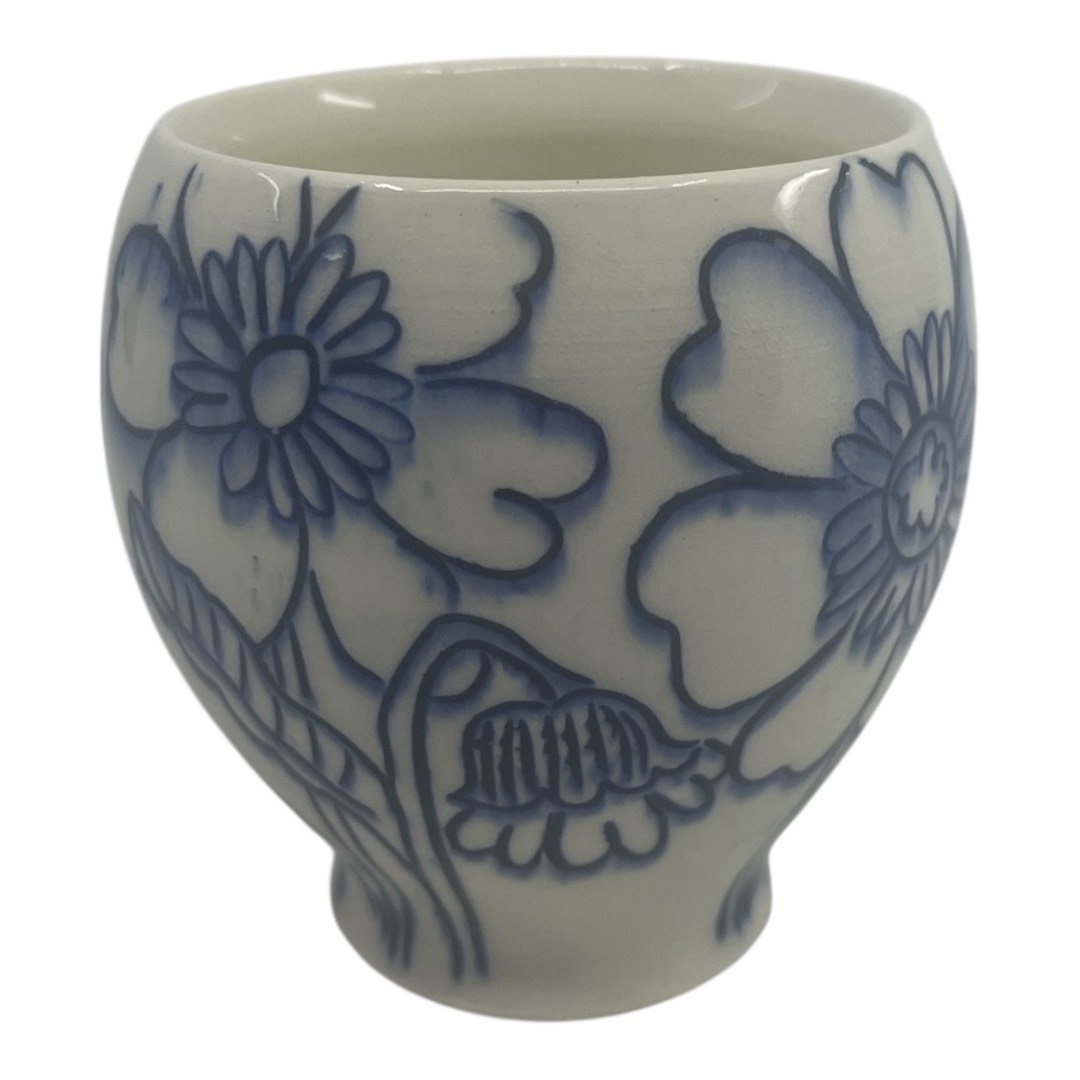 Keywords: Wheel, thrown, porcelain, cup, with, dahlia, by, Mariko, Brown, Harkin