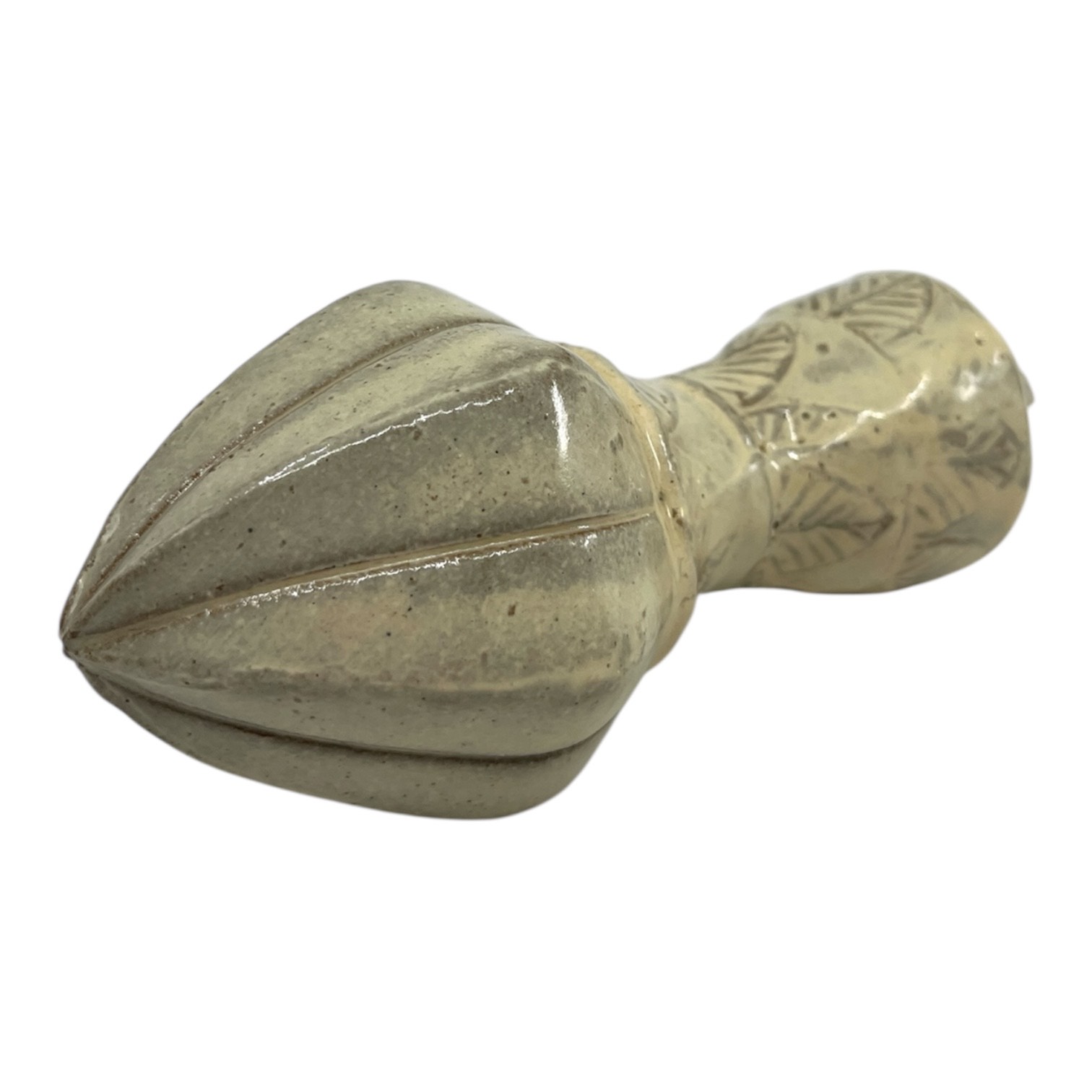 Hand built textured citrus juicer, stoneware, decorated with colored terra sigillata, underglazes, oxide washes and glazes, cone 7 by Jennifer Allen.