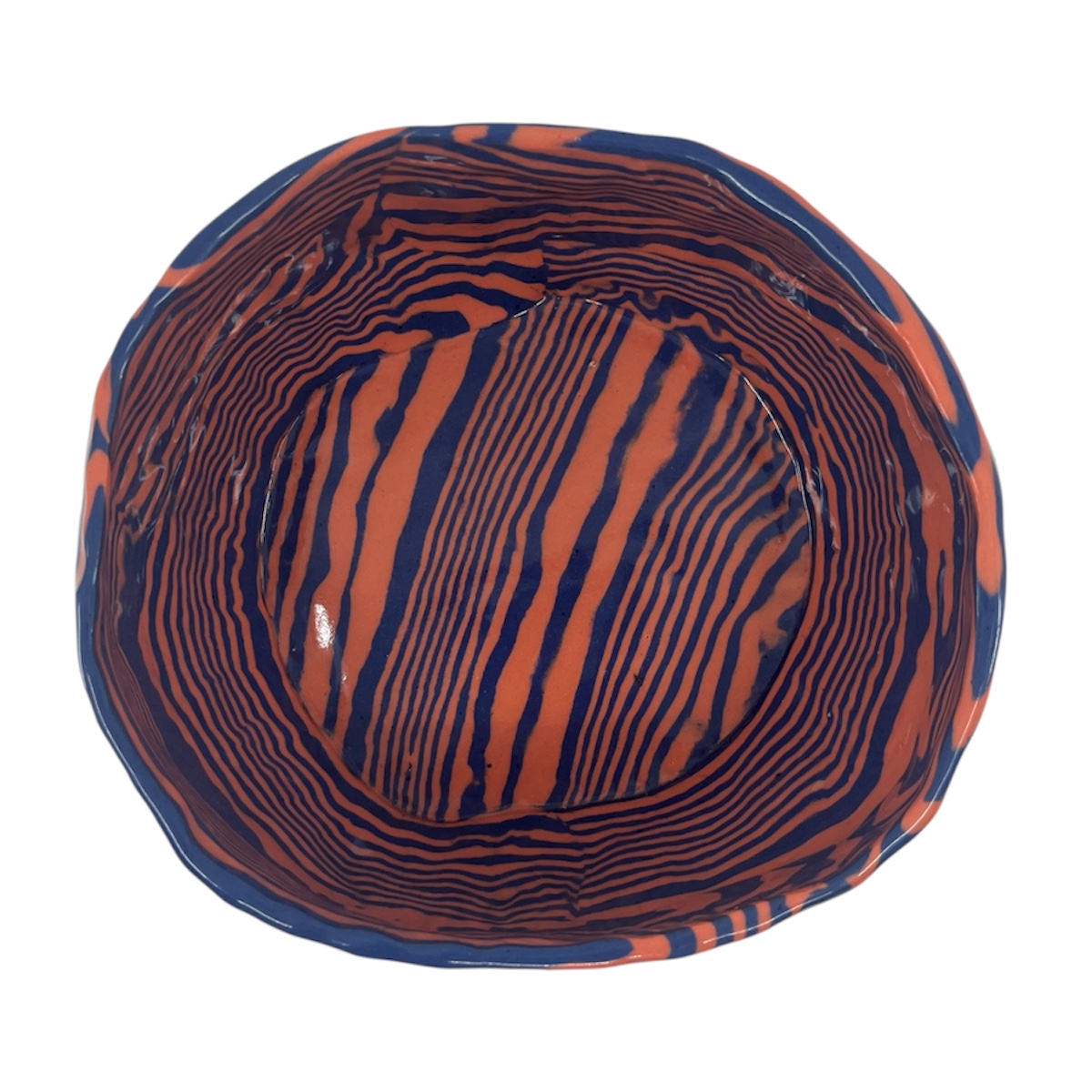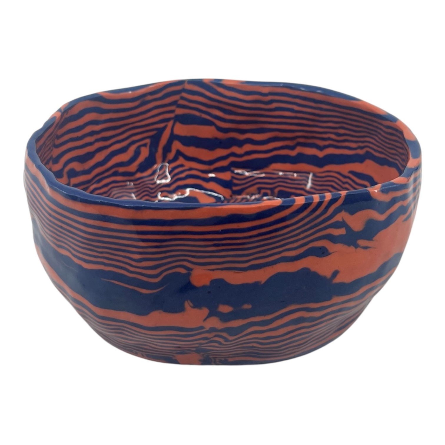 Juicy pinched bowl, cone 6 nerikomi, slab built and pinched by Jess Miller