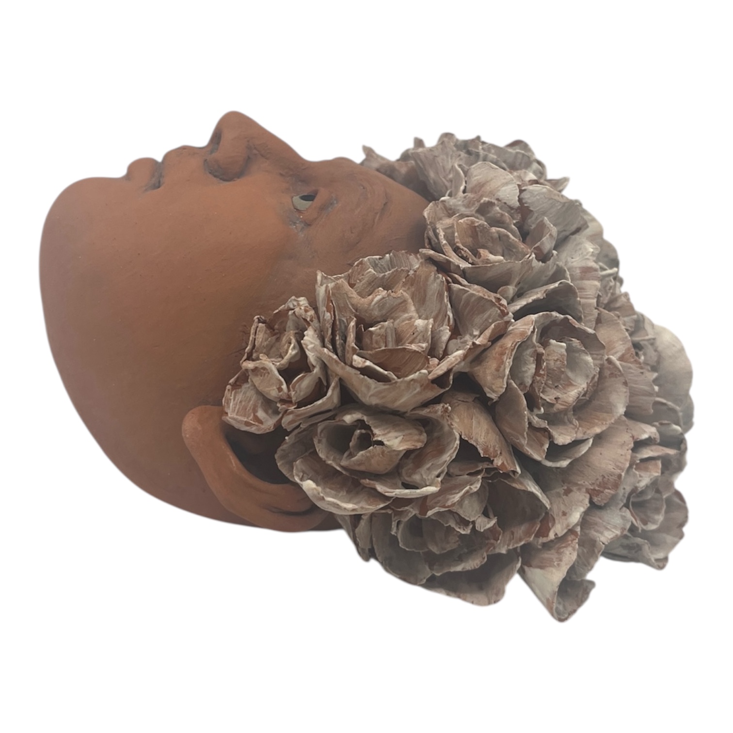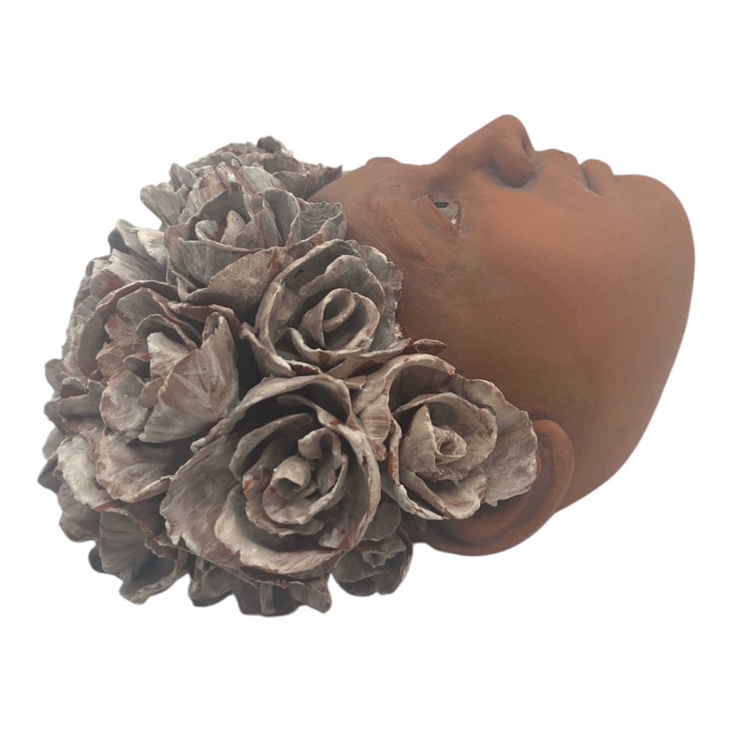 Rosy. Tera Cotta, underglaze, handbuilt, fired to cone 04 by Laura Marmash.