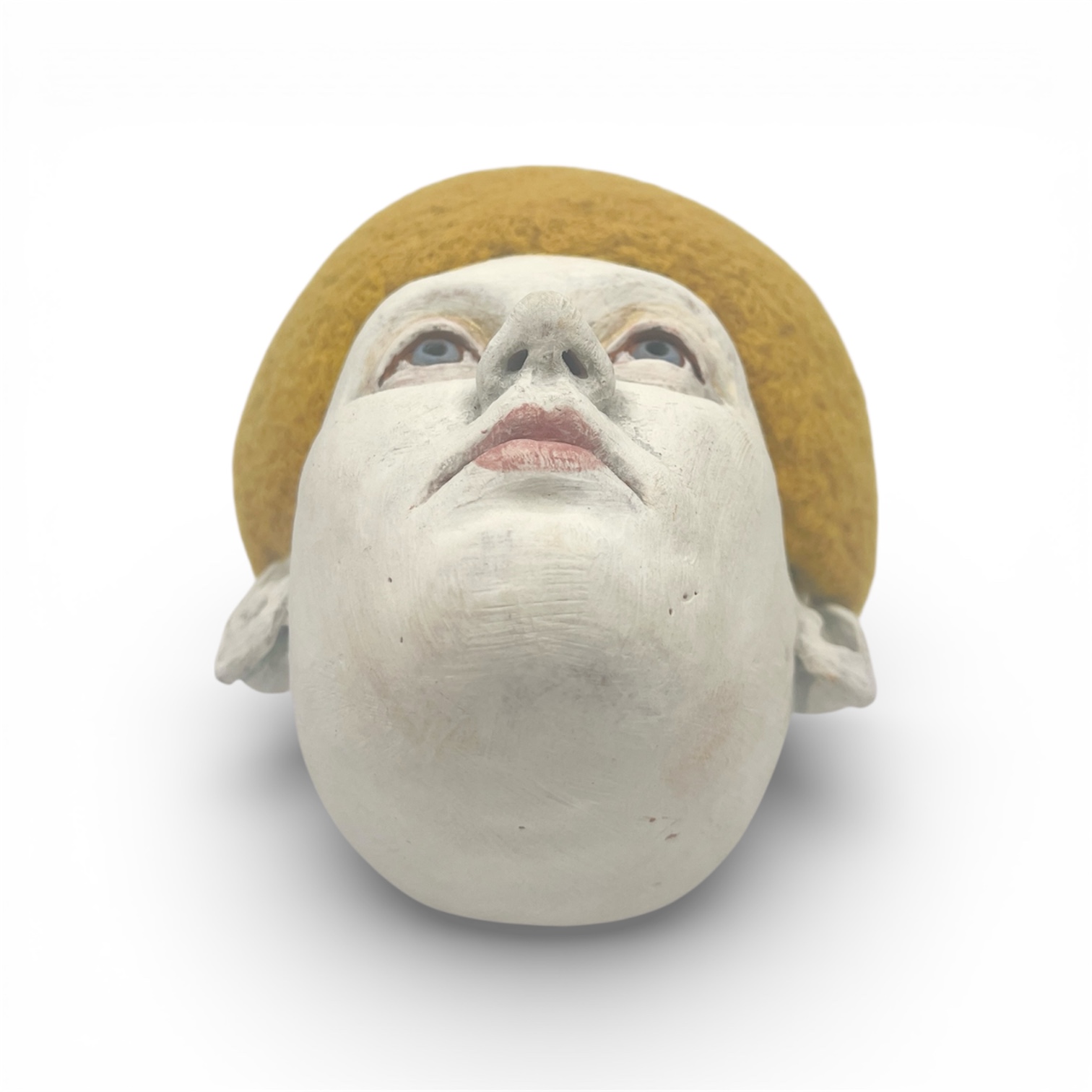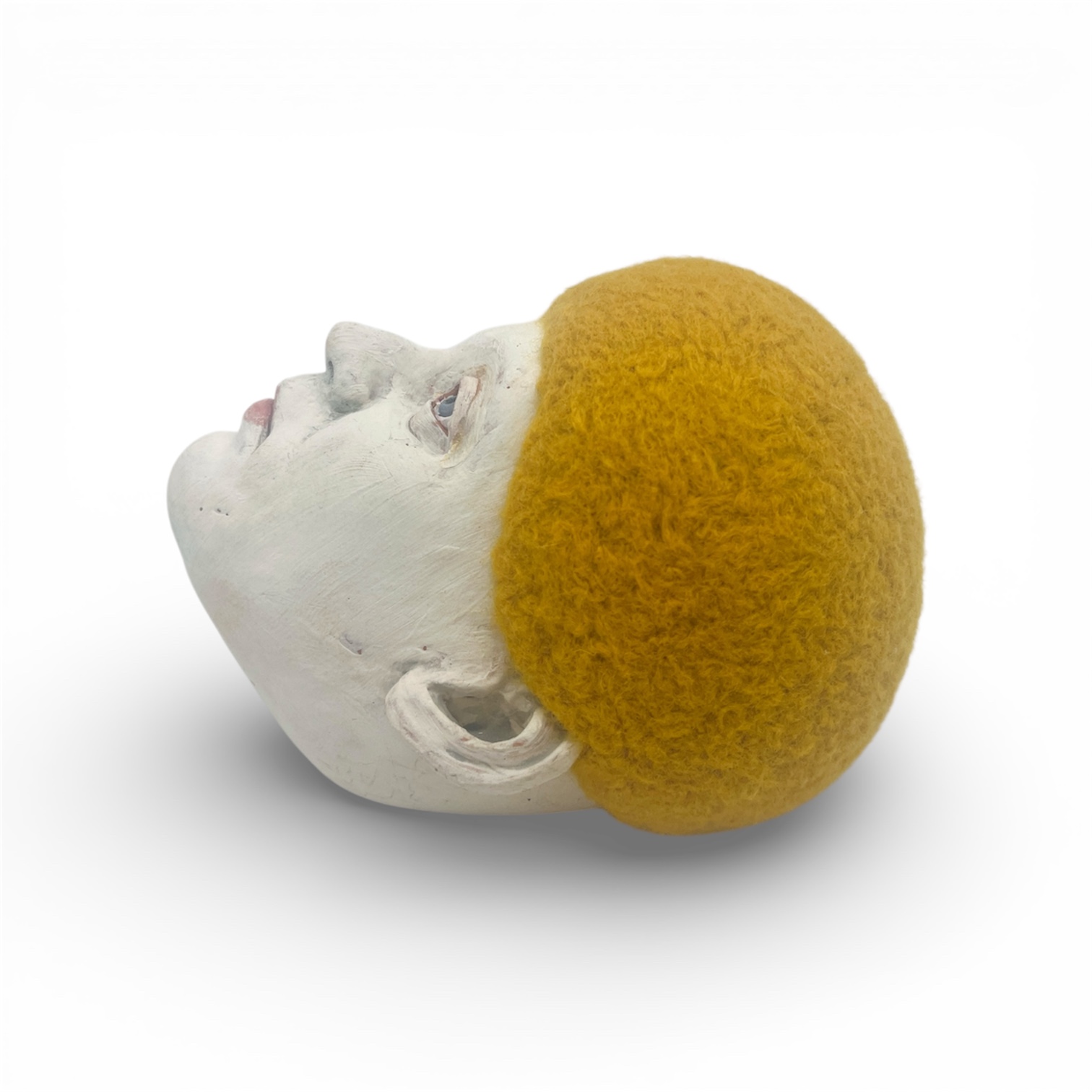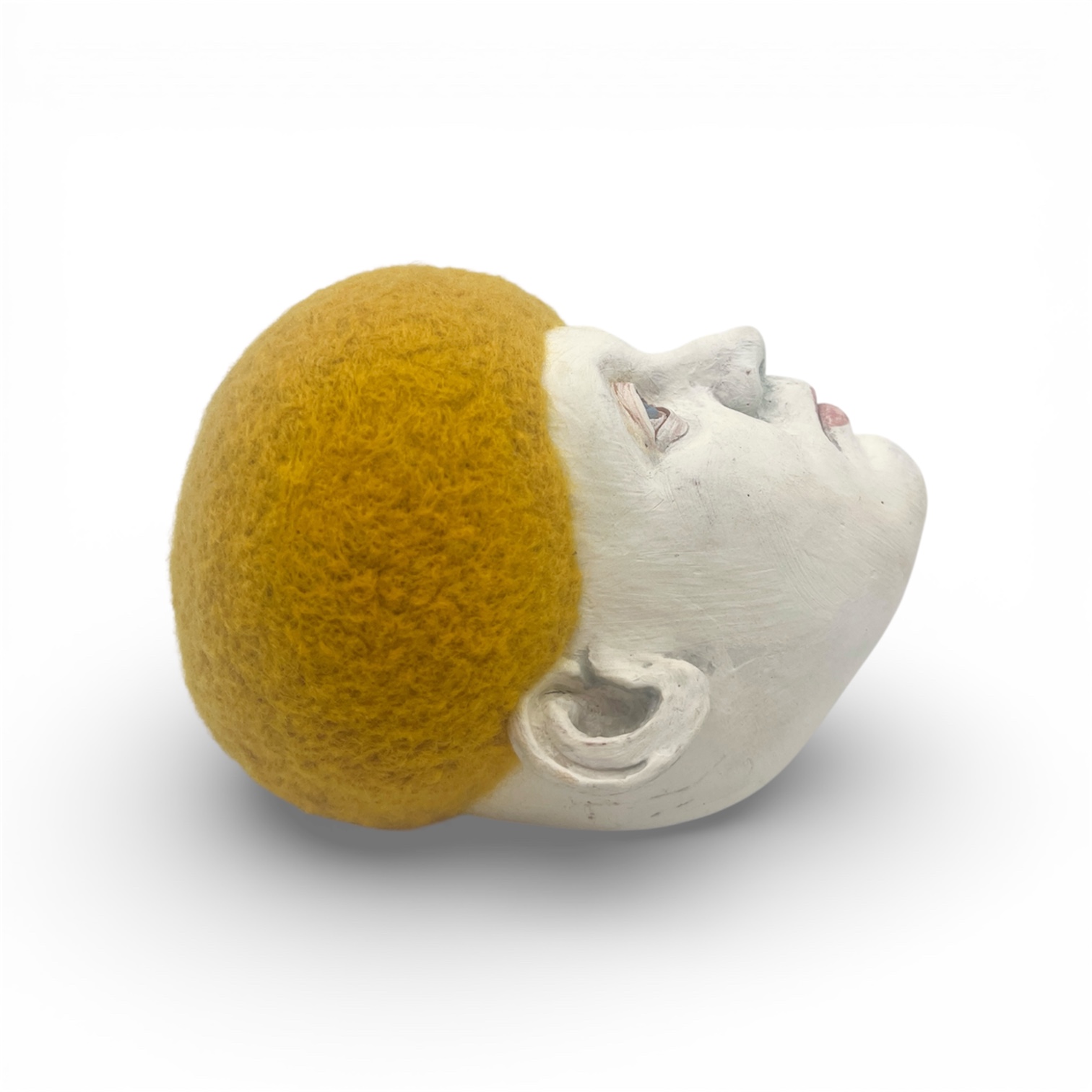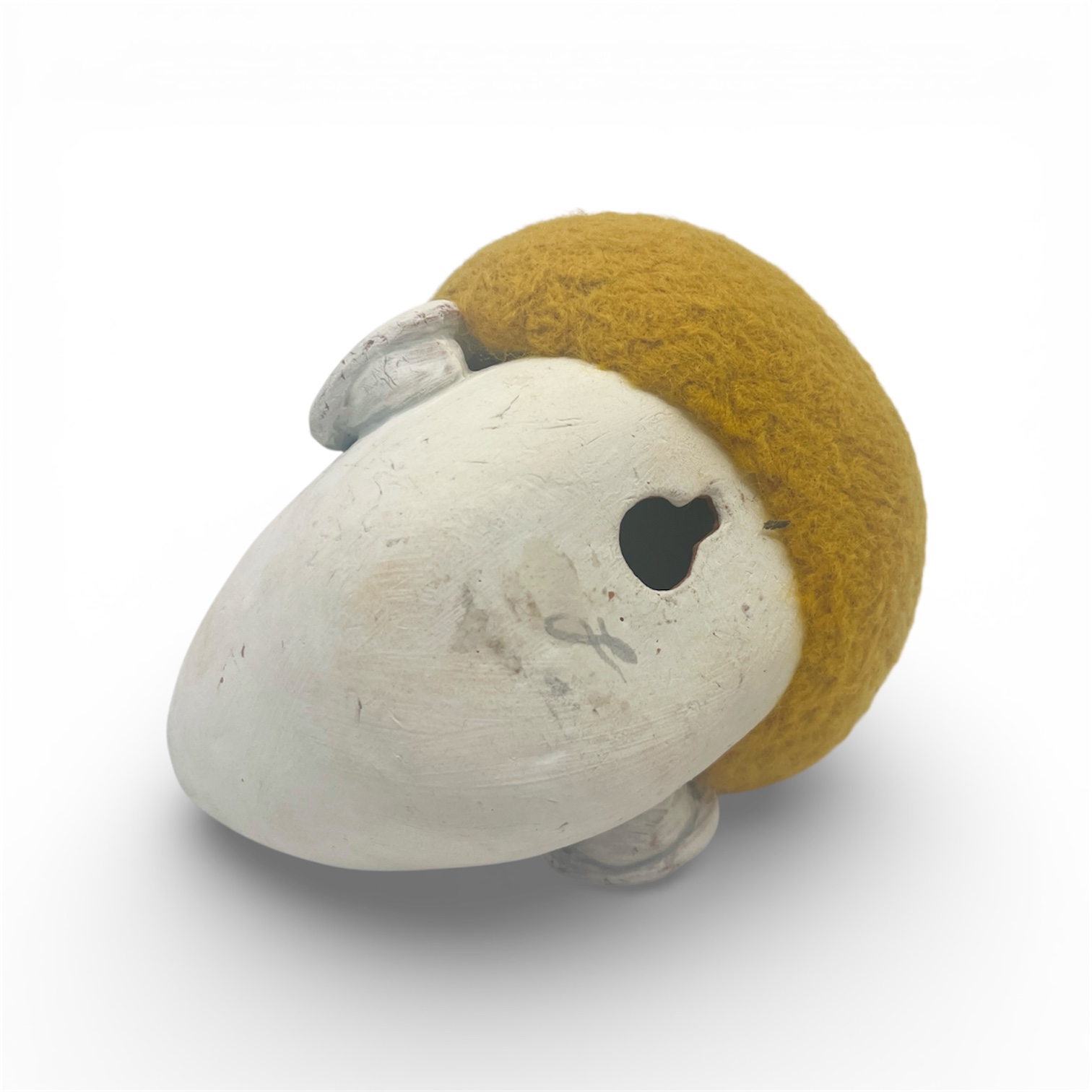 Keywords: Goldie., Tera, cotta,, underglaze,, wool., , Handbuilt, fired, to, cone, 04, by, Laura, Marmash.
