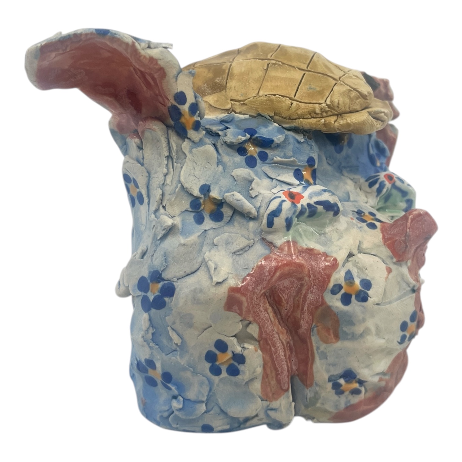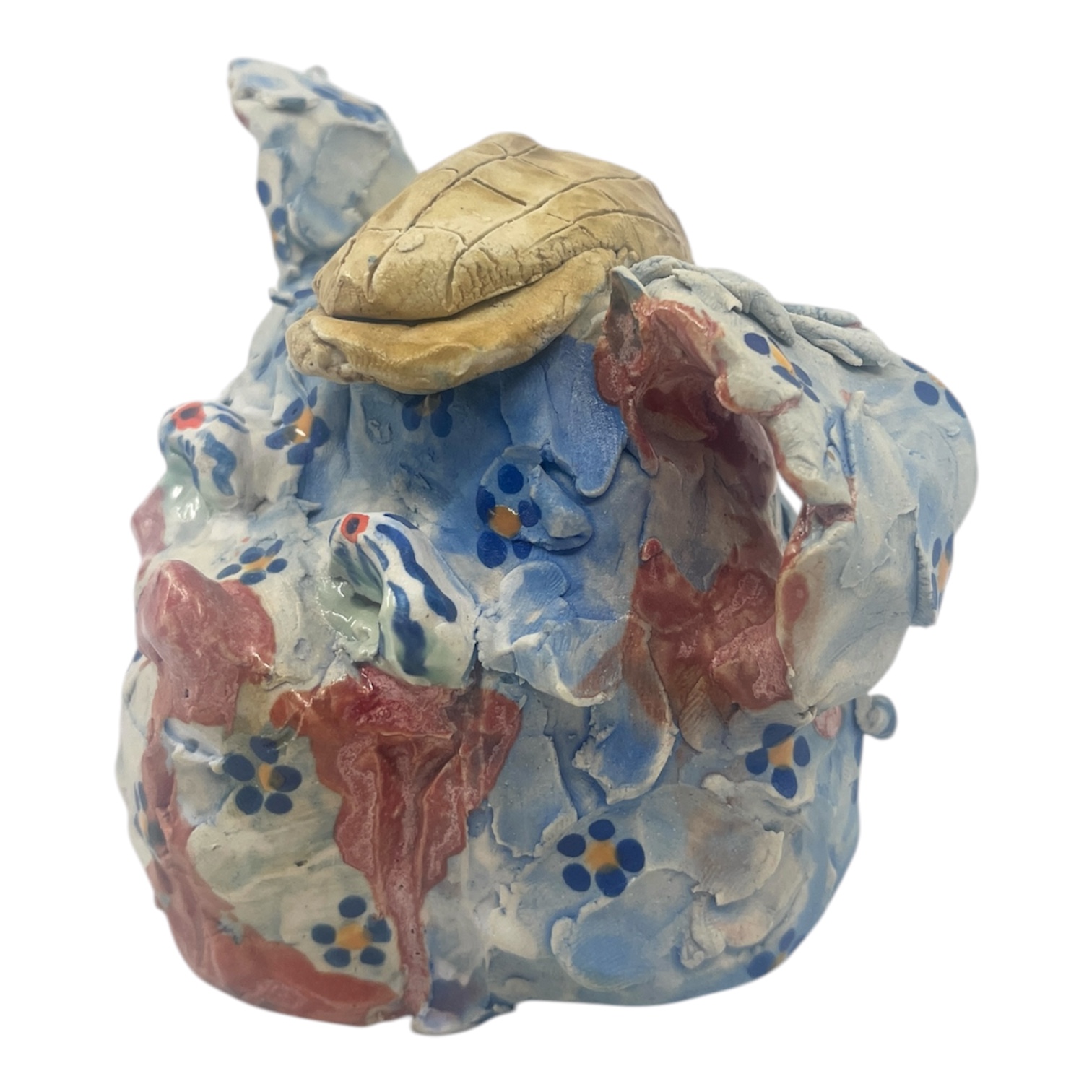 Ear Loop. Stoneware, cone 6 oxidation, underglaze, glaze. By Josh Martin.