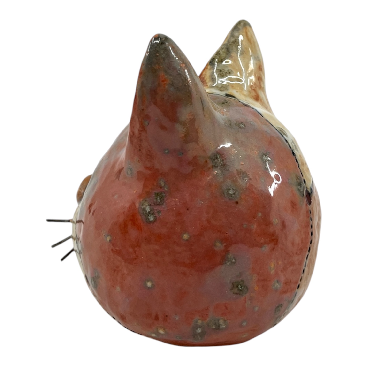 Keywords: Pink, cat, head., Cone, 10, stoneware, with, shino,, underglaze, and, nichrome., By, Heather, Banas.,