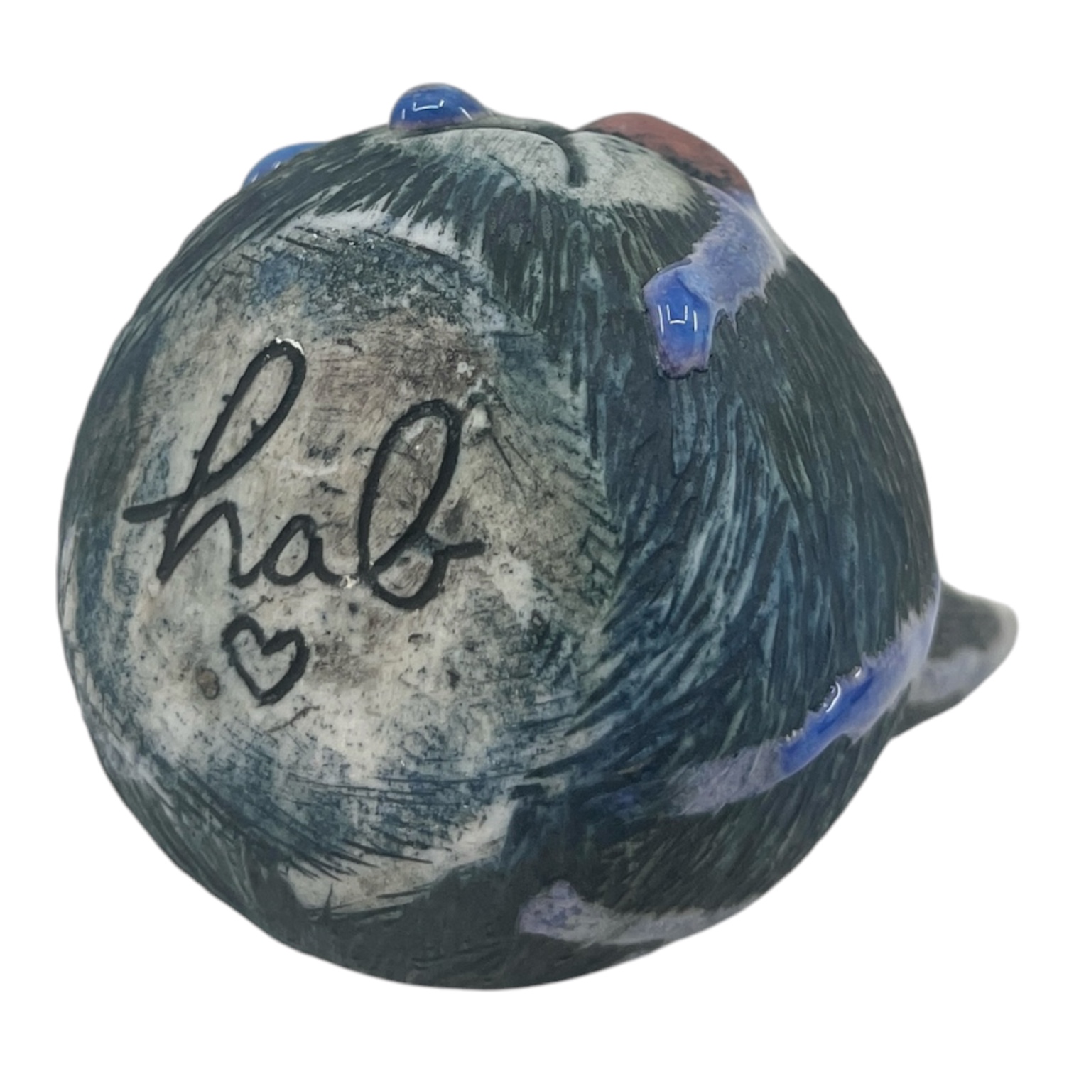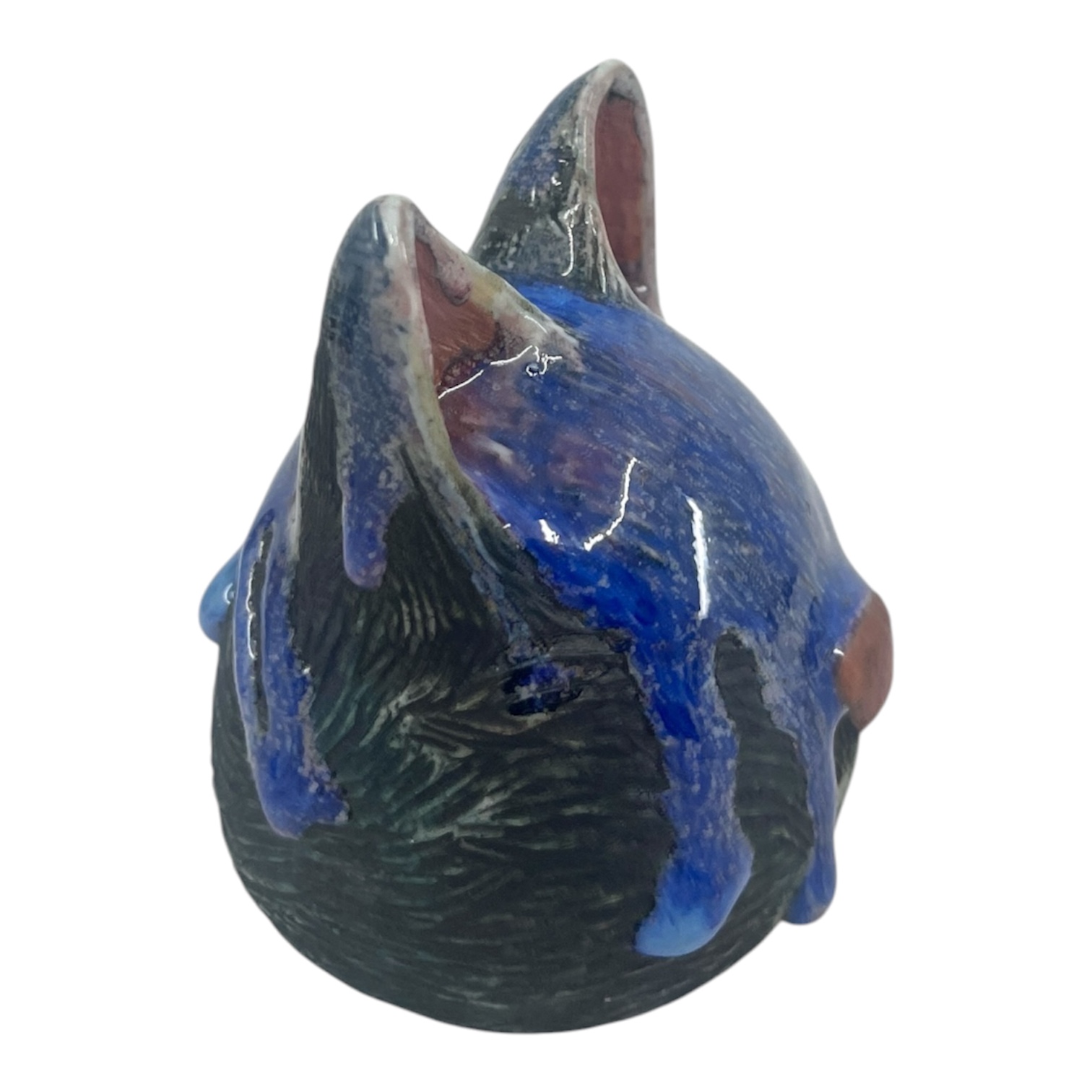 Blue Cat Head (Tom's Purple). Cone 10 stoneware with underglaze and glaze. By Heather Banas.